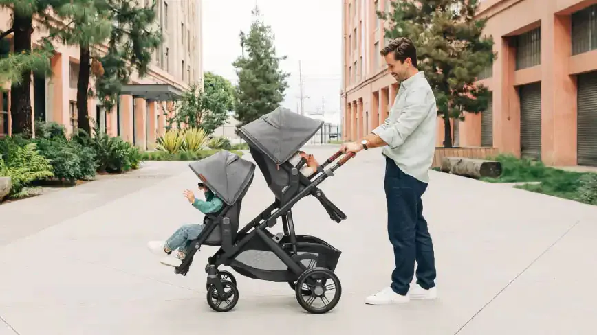 Our Vista stroller is intuitively designed to “grow” with your family! It starts as a single stroller but can easily transform to accommodate up to three children with added accessories and adapters — becoming the ultimate in portability and convenience!