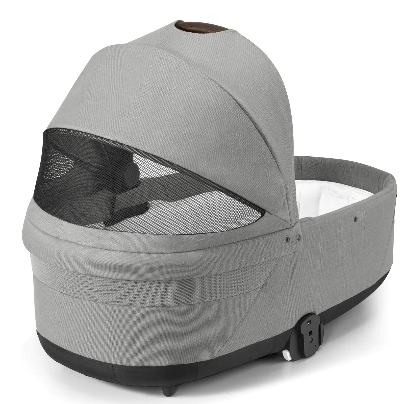 The CYBEX Cot S Lux transforms the Balios stroller into a lay-flat pram from birth featuring premium fabrics a spacious interior and a soft spring cushion for newborn comfort