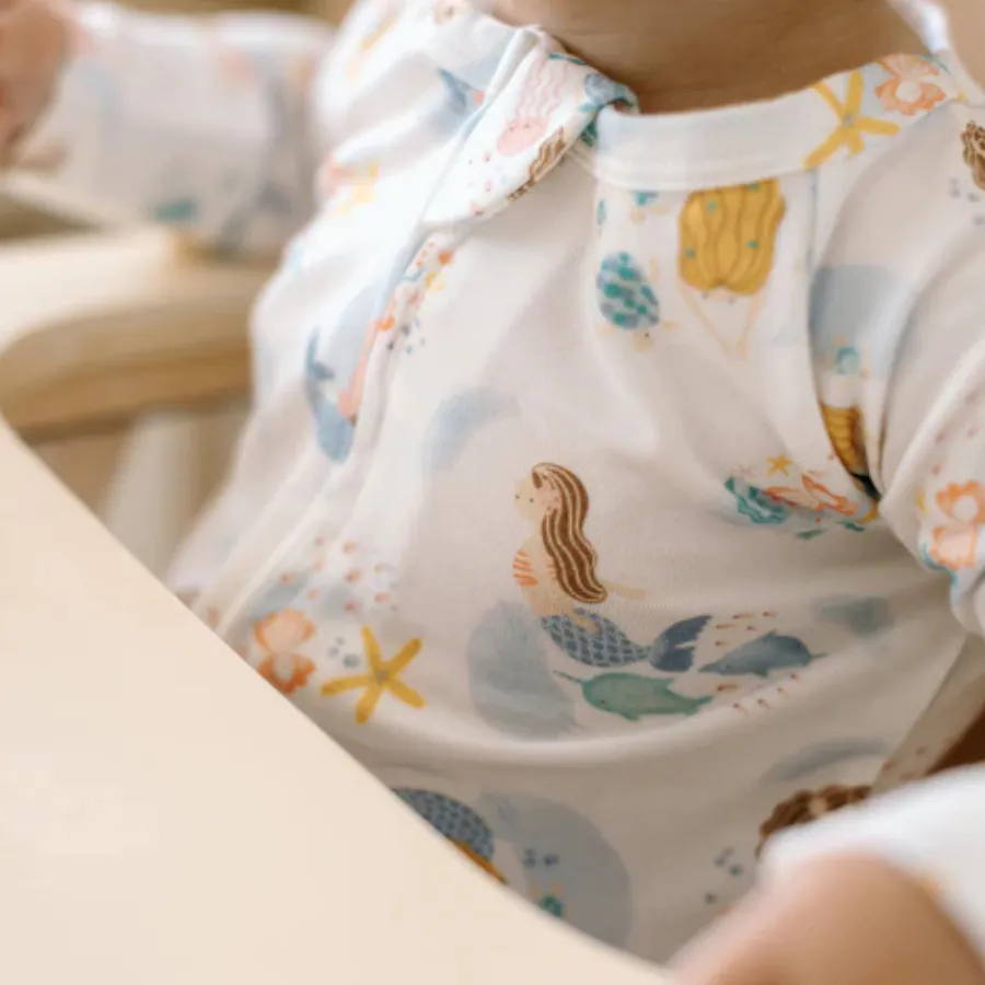 Ultra-soft baby sleeper made from sustainable TENCEL™ Lyocell fabric for superior comfort and breathability. Features a convenient two-way zipper for easy diaper changes, flat seams, and a printed care label to reduce irritation. Includes fold-over hand and foot cuffs for added warmth and versatility.