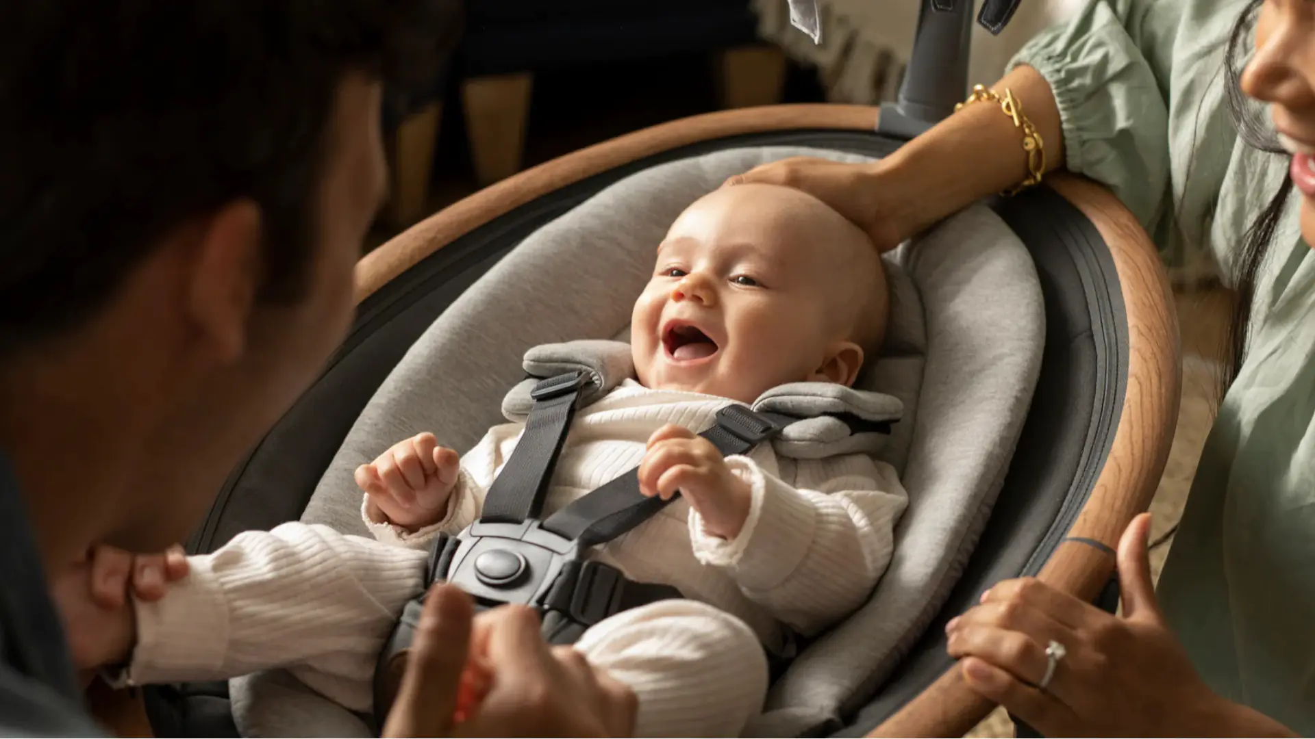 Cassia’s seat rotates a full 360°, giving your curious cutie more sights to take in. This swing's rotational ability also allows the two of you to stay connected.